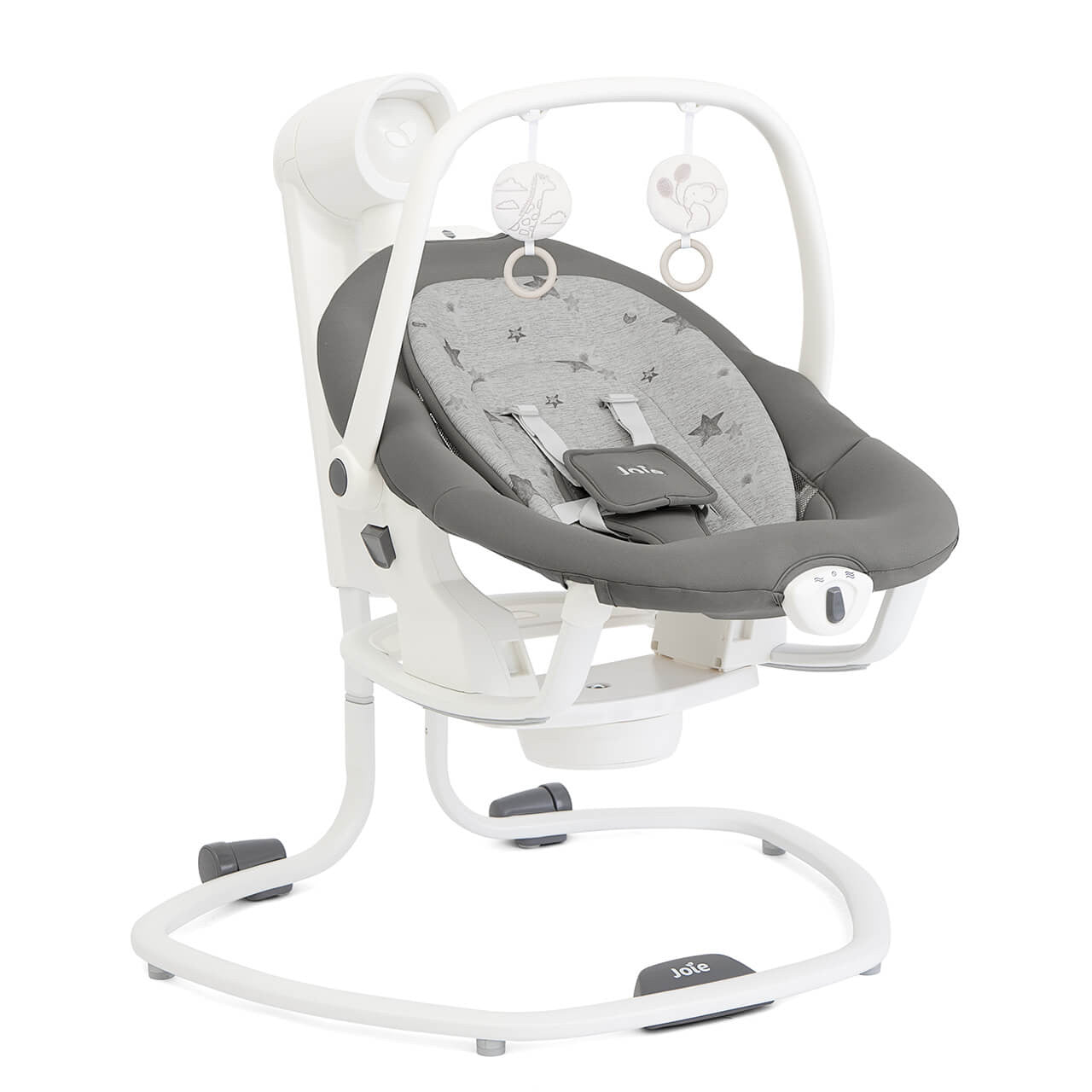 Muzička njihalica Joie Serina namenjena je mališanima već od prvog dana. Zahvaljujući svojim prilagodivim funkcijama, njihalica će biti bezbedno i ušuškano mesto gde beba može da provodi svoje prve dane, dok vi završavate svoje svakodnevne obaveze po kući. Njihalica ima umirujuće i nežne funkcije, počevši od načina i brzine ljuljanja, sve do različitih melodija i zvukova za uspavljivanje bebe.