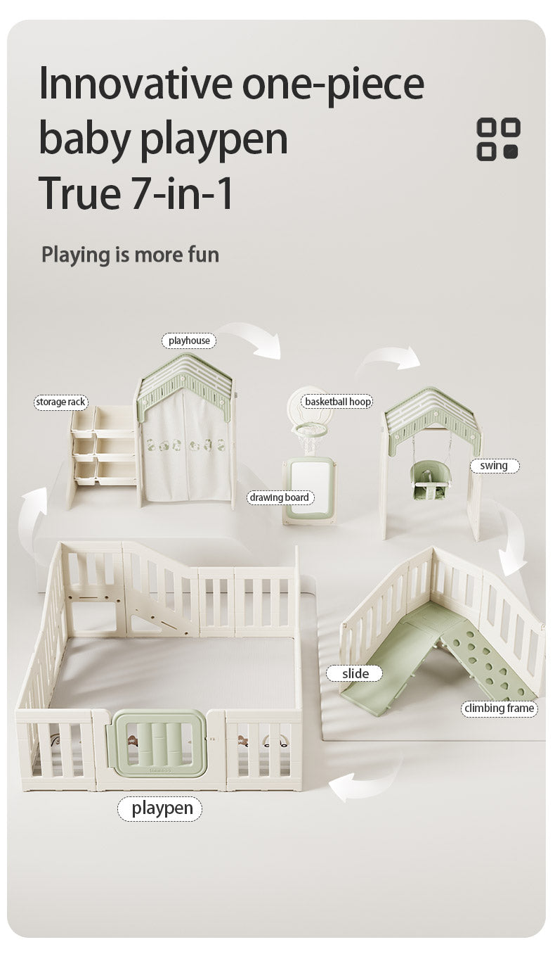 Ogradica za bebe “Inovativni 7 u 1” predstavlja vrhunski multifunkcionalni sistem namenjen stvaranju sigurnog, stimulativnog i estetski prilagođenog prostora za najmlađe. Ovaj inovativni set kombinuje sedam ključnih funkcija u jednom, pružajući roditeljima savršeno rešenje za sigurnu igru, razvojne aktivnosti i odmor deteta, uz jednostavnost sklapanja i održavanja.