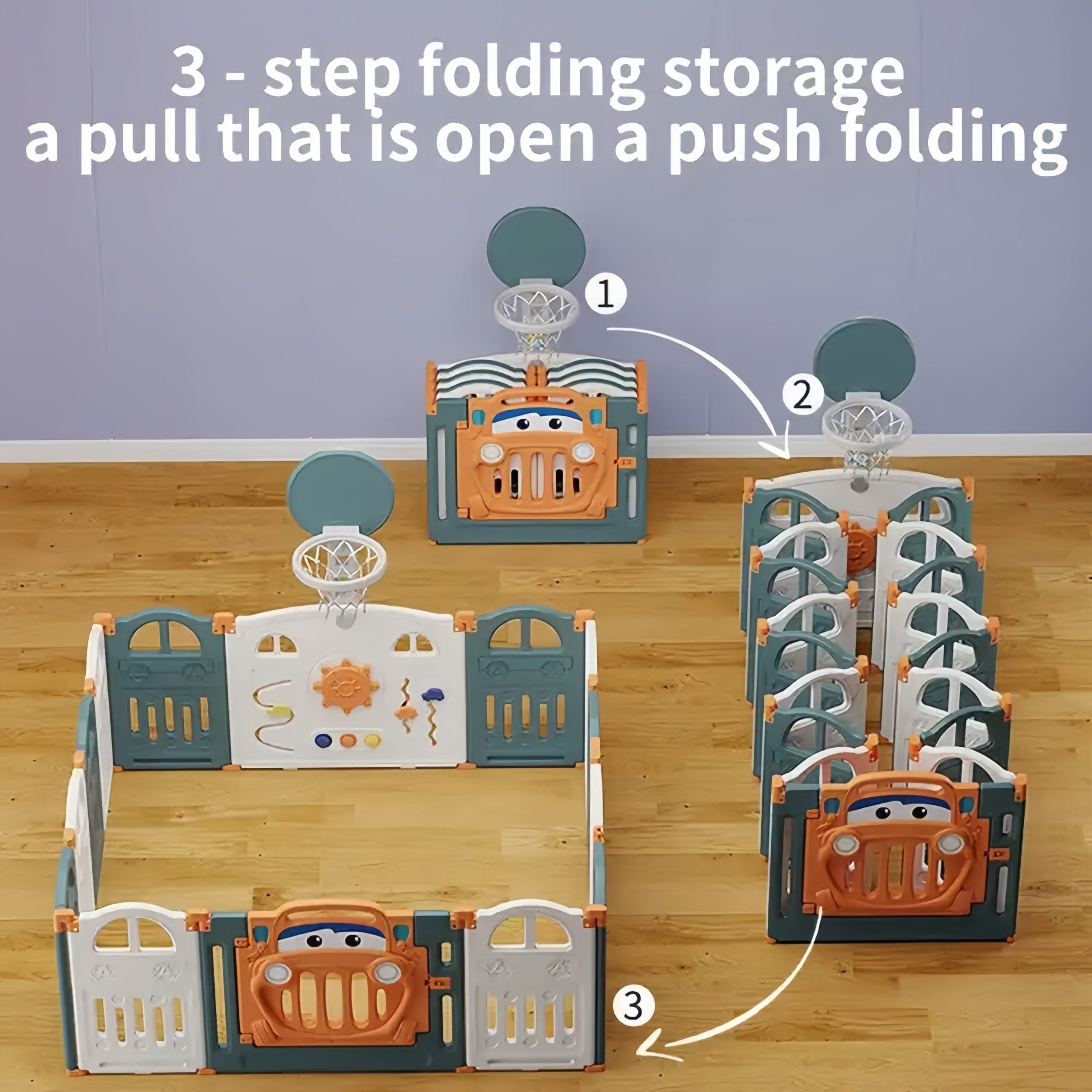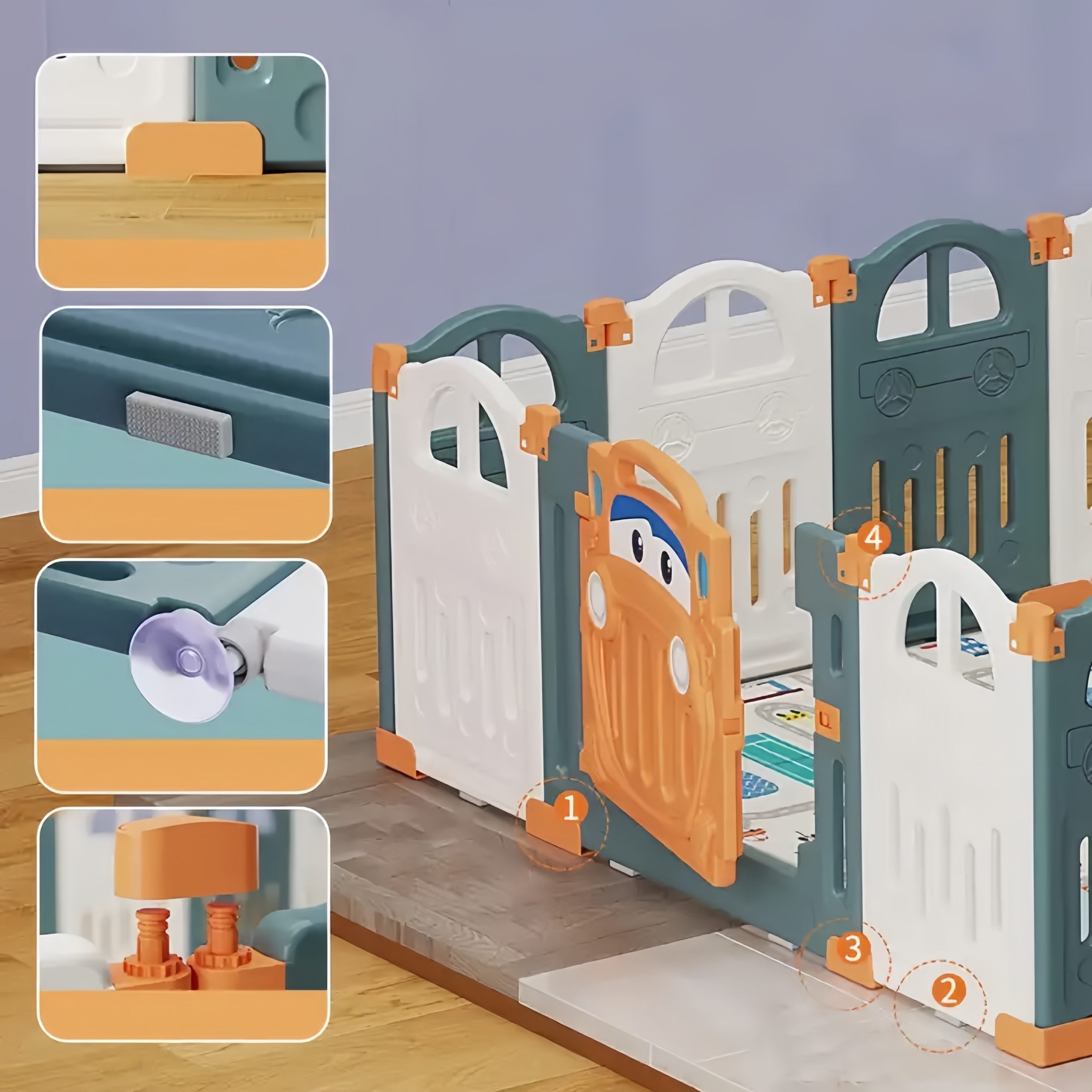 - Raznovrsne funkcije za najmlađe: Set sastoji od ukupno 16 panela – 14 standardnih panela, 1 panel za igru i 1 vrata za jednostavan ulazak i izlazak. Ovi paneli omogućavaju lako prilagođavanje prostora i sigurnu, neograničenu igru.