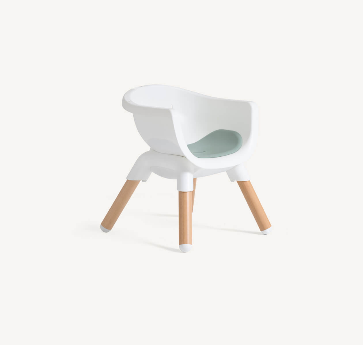 - 3 različite visine nogu omogućavaju podešavanje stolice tako da dete može udobno učestvovati u obrocima sa vama — pored stola, kuhinjskog pulta ili na stolu za decu