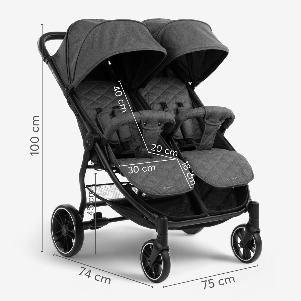 Kikka Boo Happy 2 kolica za blizance pružaju savršenu kombinaciju praktičnosti i udobnosti za roditelje sa dvoje dece. Dizajnirana su za lakše kretanje sa blizancima ili decom sličnog uzrasta, uz lagan aluminijumski ram i jednostavno sklapanje.