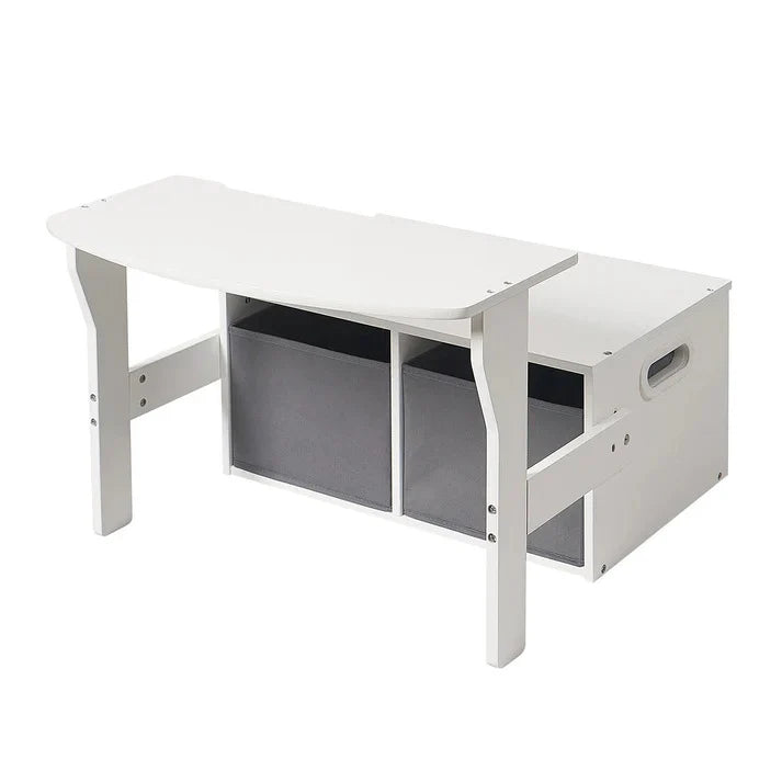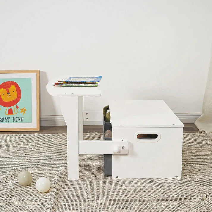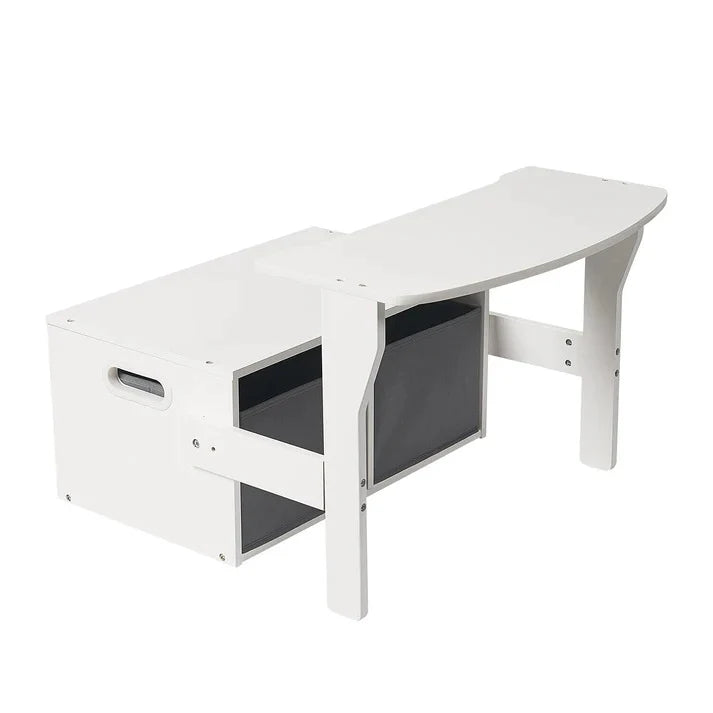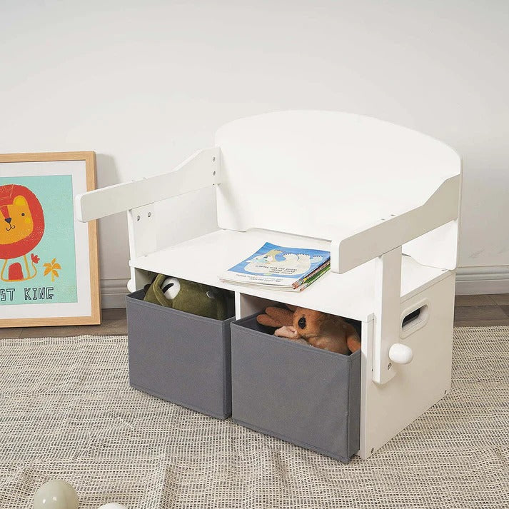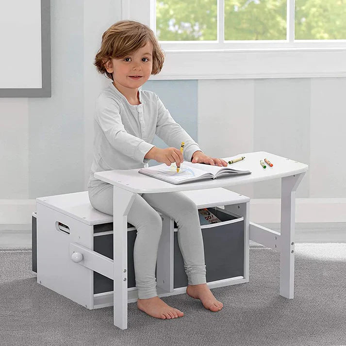 Klupa KINDER HOME ima inovativan dizajn 3 u 1 koji se lako pretvara iz klupe sa prostorom za odlaganje u stolicu i radni sto.