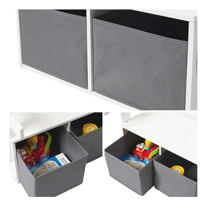 Čvrsta konstrukcija ima dosta prostora za odlaganje sa dve kante za tkaninu ispod sedišta, savršene za knjige, igračke ili potrepštine za zanat.