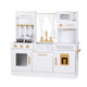 Drvena kuhinja za decu opremljena zvukom, svetlima i svime što je potrebno malim kuvarima – metalnim loncima i posuđem, baš kao prava kuhinja. Sa mnogo ormarića i "aparata" sa kojima će se deca igrati i satima uživati, učeći osnovne kućne aktivnosti i poslove.