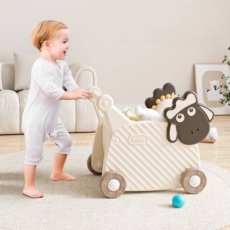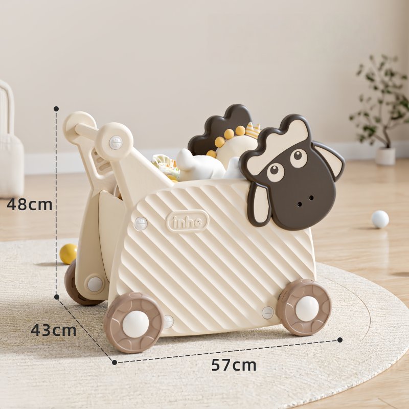 Praktičan prostor za odlaganje omogućava detetu da ponese omiljene igračke, plišane drugare ili kocke, čime se dodatno podstiče kreativna i samostalna igra. Tihi i mekani točkovi obezbeđuju glatku vožnju bez oštećenja podova.