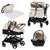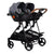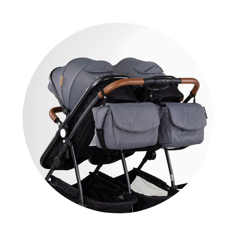 U setu dolazi aluminijumski ram kolica sa dva sportska sedišta, dva auto sedišta, dve navlake za noge sa dva meka uloška za sedišta, kao i dve torbe sa podlogama za presvlačenje za sve stvarčice koje vam mogu biti neophodne tokom šetnje. Uz auto sedišta dobijate i adaptere kako biste mogli da ih postavite na sam ram kolica.