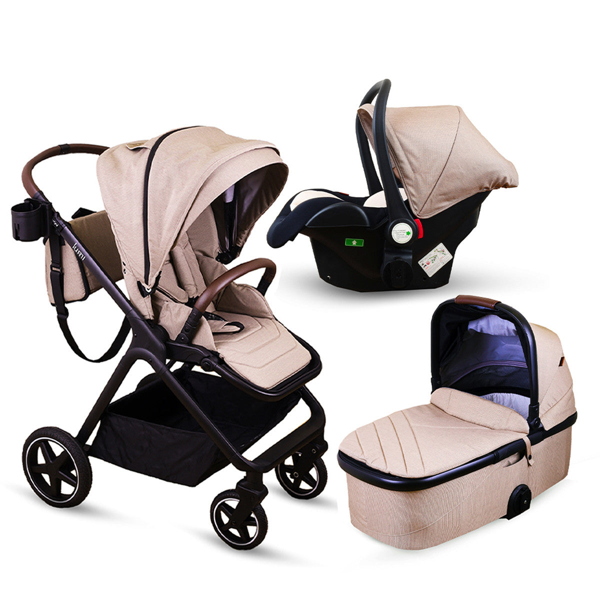 Jungle Lumi sistem 3 u 1 obuhvata kolica, korpu (nosiljku) i auto sedište za bebu. Ova kolica atraktivnog i praktičnog dizajna su sve što vam je potrebno od bebinog rođenja i mogu se koristiti do 36 meseci.