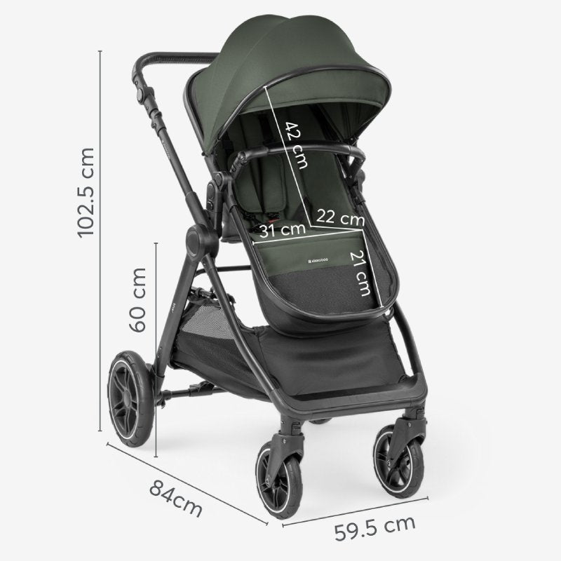 - Uključuje sportsko sedište (0-22kg/4 godine), korpu za novorođenče (0-9kg/4 godine) i I-Size auto sedište (40–87 cm)