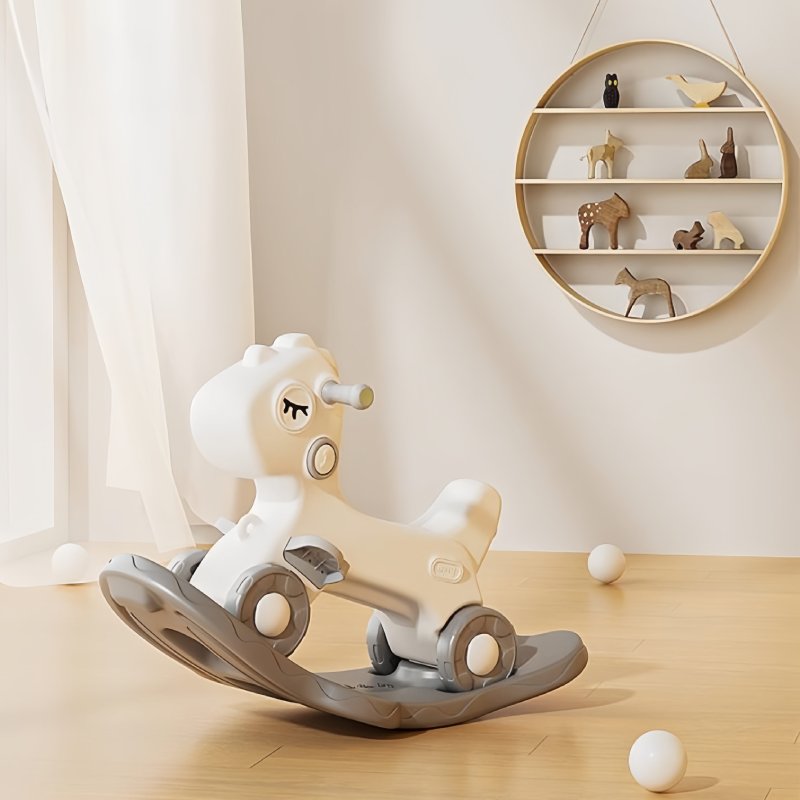 Zahvaljujući praktičnom dizajnu, konjić se lako transformiše iz stabilne klackalice u guralicu na točkićima, pružajući dva različita načina igre u jednom proizvodu.