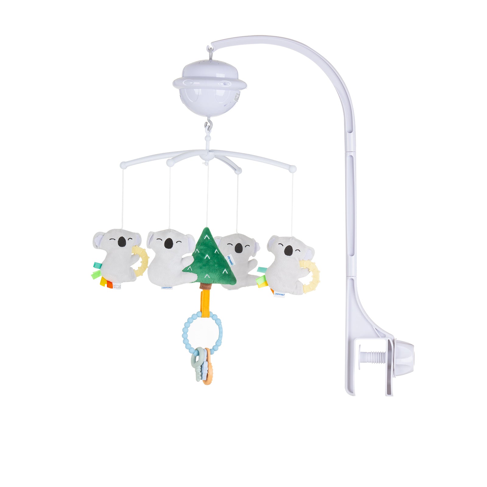 Ova vrteška za krevetac je pogodna za novorođenčad. Nežne melodije pomažu bebi da lakše zaspi. Poseban umirujući pokret vrteške privlači bebinu pažnju. Igračka projektuje različite boje i oblike kako bi smirila bebu. Svaka plišana igračka pleše iznad glave, beba će voleti da gleda kako se ovi likovi okreću. Ova igračka pomaže razvoju vida i sluha.